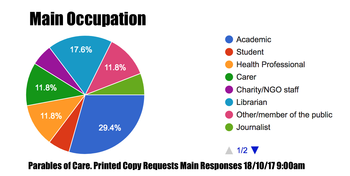 Whether we could have done something more interactive and properly born-digital is unquestionable--that we lacked the funding and working conditions is unquestionable too. However we are happy with the result and the feedback we are receiving. I think this may be an example of how with relatively small resources one can at least aspire to a significant impact amongst targeted demographics hopefully beyond academia. (We already have data the comic has reached different occupations-- percentages chart attached).